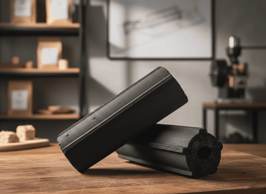 Hexagonal charcoal briquettes feature a central hole that enhances airflow and combustion efficiency. These briquettes are ideal for professional grilling and commercial cooking where steady heat and extended burn time are essential.